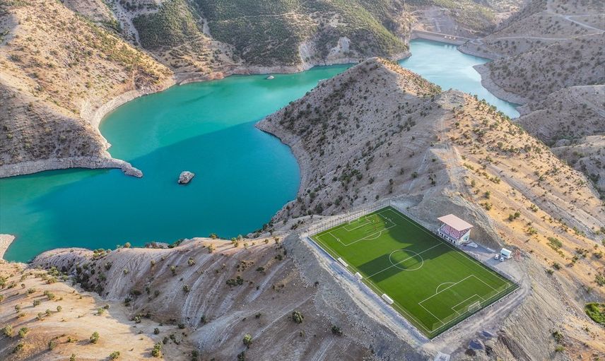 Şırnak'ın Uludere ilçesinin Hilal beldesinde Hanke Dağı yamacında FIFA standartlarında inşa edilen baraj gölü manzaralı stat, futbol tutkunu gençlerin yaşamını değiştirdi.