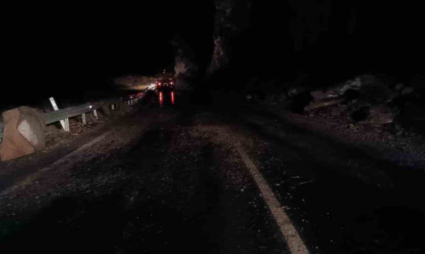 Şırnak’ın Uludere ilçesine bağlı Haburiki köyü yakınlarındaki Komato bölgesinde, dün akşam yaşanan şiddetli yağışın ardından dağdan kopan kaya parçaları yolu uzun süre trafiğe kapattı.