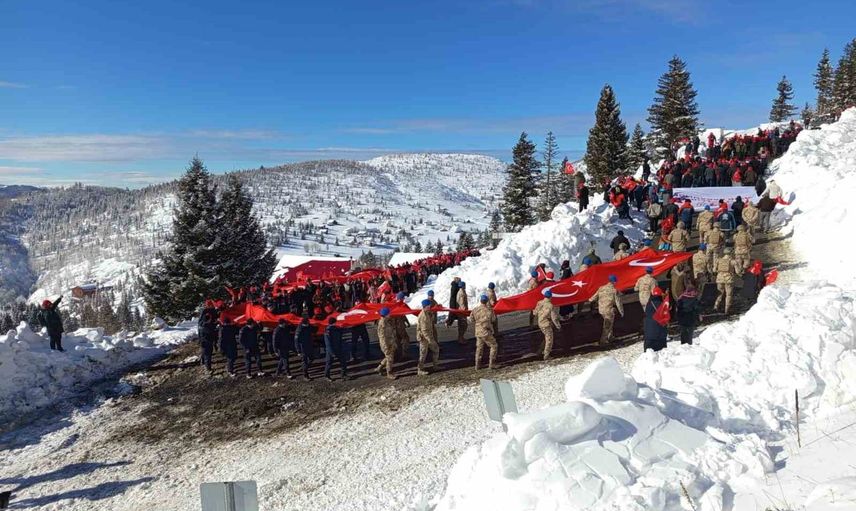 Etkinlik, Sis Dağı Hanyanı Mevkiinde toplanılmasının ardından başladı. Katılımcılar, tekbirler eşliğinde ve 350 metrelik Türk Bayrağı ile 2 bin 187 rakımlı Sis Dağına yürüdü.