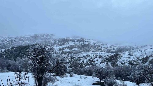 Sivas’ın Koyulhisar ilçesinde yüksek rakımlı bölgelerde etkili kar yağışı, dağlık alanlar kısa sürede beyaza büründü; vatandaşlar manzarayı görüntüledi.