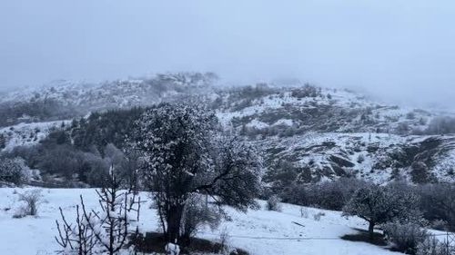 Sivas’ın Koyulhisar ilçesinde etkili olan soğuk hava, yüksek rakımlı bölgeleri beyaza bürüyerek kartpostallık manzaralar oluşturdu.