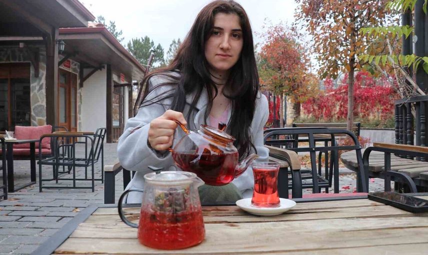 Sivas'ta bir kafede hazırlanan 50 farklı bitki çayı, bitkilerin harmanlandığı renkleri ve müşterilerle işletmecinin birlikte belirlediği özgün isimleriyle yoğun ilgi görüyor. Kış aylarının gelmesiyle talep daha da artarken, çaylar hem aromatik hem de görsel bir deneyim sunuyor.