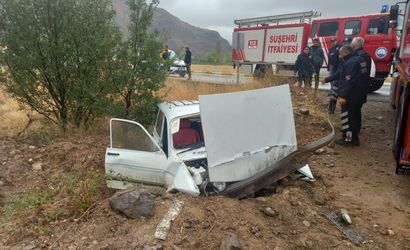 Kazada araçta sıkışan sürücü ile P.G., ekiplerce bulundukları yerden çıkartıldı.