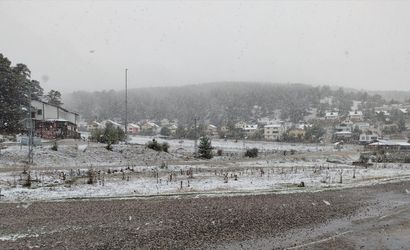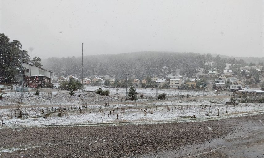 Özellikle ilkbaharda doğal güzellikleriyle görenleri etkileyen yayla, kar yağışıyla kısmen beyaz örtüyle kaplandı.