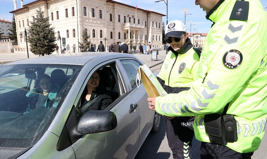 Sivas'ta, 8 Mart Dünya Kadınlar Günü münasebetiyle trafik ekipleri, durdurdukları kadın sürücülere hediye dağıttı. İl Emniyet Müdürlüğü Trafik Tescil ve Denetleme Şubesi'ne bağlı ekipler, İnönü Bulvarı'nda bulunan Atatürk Kongre Müzesi önündeki uygulama noktasında kadın sürücüleri durdurdu.