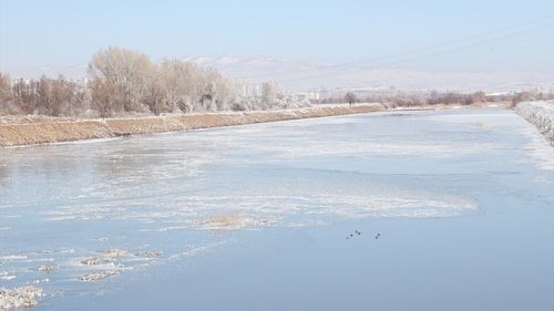 Sivas'ta Kızılırmak Nehri'nin yüzeyi buzla kaplanırken, Altınyayla ilçesi 23 dereceyle Türkiye'nin en soğuk bölgesi oldu.