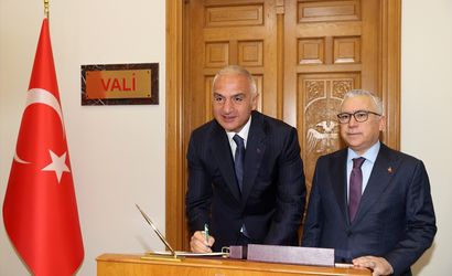 Kültür ve Turizm Bakanı Mehmet Nuri Ersoy (sol 3), çeşitli programlara katılmak üzere Sivas'a geldi. Ersoy, Sivas Valiliğini ziyaret etti. Bakan Ersoy'a ziyaretinde TBMM AK Parti Grup Başkanı Abdullah Güler de (sağ 2) eşlik etti.