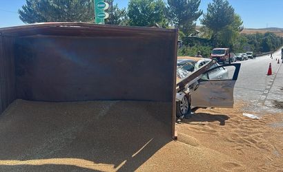 Edinilen bilgiye göre, İ.A. idaresindeki 55 AKR 50 plakalı otomobil, Sıcak Çermik mevkiinde, N.T. yönetimindeki plakasız ve buğday yüklü traktör ile çarpıştı.