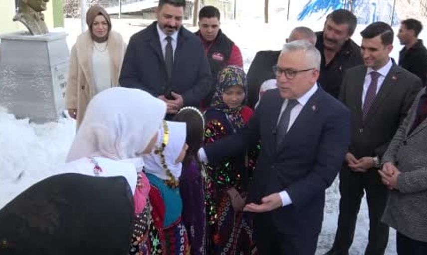 Sivas Valisi Yılmaz Şimşek, Şehit Abdulkadir Koç İlk ve Ortaokulunu ziyaret ederek öğrencilerle sohbet etti ve ahşap kızakları öğrencilere dağıttı.