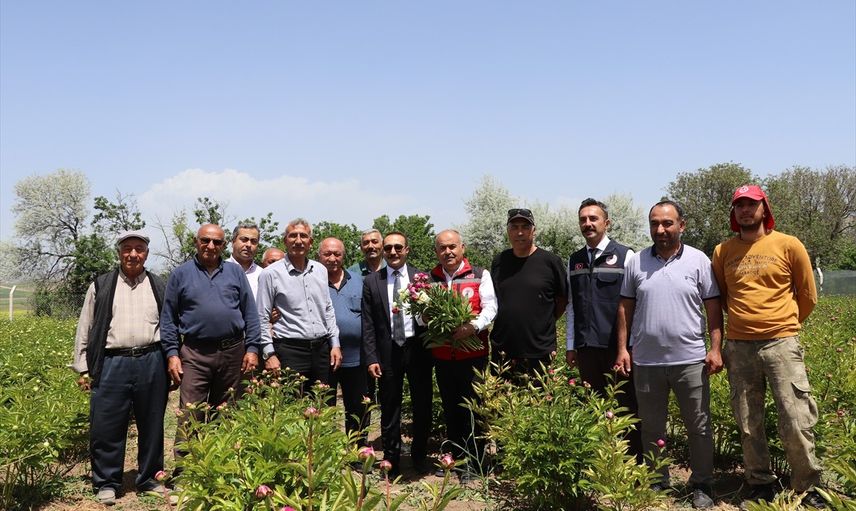 Sivas'ın Gemerek ilçesinde şakayık çiçeği hasadı gerçekleştirildi.
