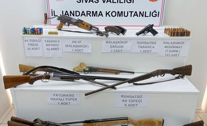Sivas'ın Gürün ilçesinde jandarma ekiplerince gerçekleştirilen silah kaçakçılığı operasyonunda 3 şüpheli yakalandı. Adreste yapılan aramada kalaşnikof tüfek, tabanca, av tüfeği, havalı tüfek ve bu silahlara ait mermiler ele geçirdi.