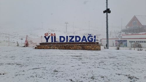 Sivas'ta Yıldız Dağı Kış Sporları ve Turizm Merkezi'ne mevsimin ilk karı yağdı; pistler ve mekanik tesisler beyaza büründü.