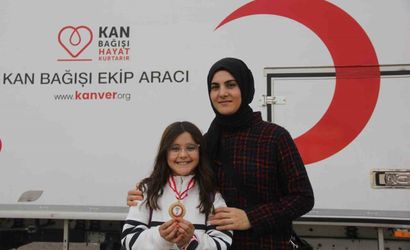 Öğrencilerin ailelerini sırayla okula getirdiği, velilerin de madalya yarışında yer almak için birbiriyle yarıştığı organizasyonda 8 saat içinde toplam 98 bağışçı kan verdi.