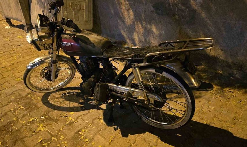 Polis ekipleri, motosikletin sahibini bulmak ve yangının çıkış nedenini belirlemek üzere çalışma başlattı.