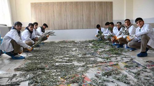 Siverek Sultan Alparslan MTAL öğrencileri okul bahçesindeki uygulama alanında lavanta, biberiye ve adaçayı yetiştirip tohumdan sofraya tarım eğitimi alıyor.