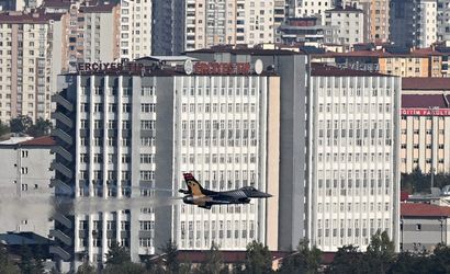 Kayseri 12. Hava Ulaştırma Ana Üs Komutanlığından havalanan SOLOTÜRK, Recep Tayyip Erdoğan Millet Bahçesi üzerinde akrobasi hareketleri sergiledi.