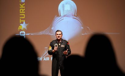 Türk Hava Kuvvetlerinin (TSK) gösteri timi SOLOTÜRK'ün pilotları, İzmir'de üniversite öğrencileriyle bir araya gelerek deneyimlerini anlattı. Hava pilot Binbaşı Murat Bakıcı (sol 2), hava pilot Binbaşı Mustafa Erhan Aydemir (sağda) ve hava uçak bakım Binbaşı Tuna Karalı (solda) öğrencilerle deneyimlerini paylaştı.