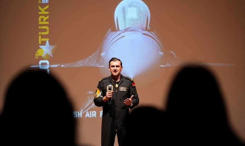 Türk Hava Kuvvetlerinin (TSK) gösteri timi SOLOTÜRK, İzmir'de üniversite öğrencileriyle bir araya geldi ve deneyimlerini paylaştı. Ege Üniversitesi'nde gerçekleştirilen etkinlikte, Hava Pilot Binbaşılar Murat Bakıcı ve Mustafa Erhan Aydemir ile Hava Uçak Bakım Binbaşı Tuna Karalı yer aldı.