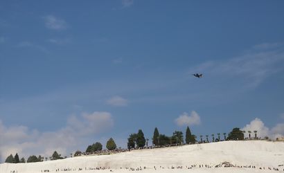 Türk Hava Kuvvetlerinin akrobasi timi SOLOTÜRK, UNESCO Dünya Mirası Listesi'ndeki Pamukkale'de gösteri uçuşu gerçekleştirdi.