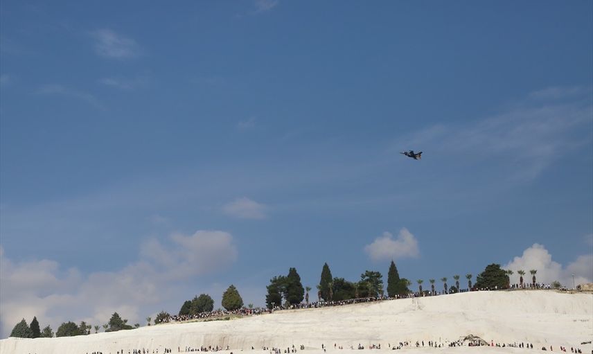 SOLOTÜRK pilotlarının gerçekleştirdiği akrobasi hareketleri kentin birçok noktasından izlenebildi. Kocaçukur ve Pamukkale travertenlerini dolduran binlerce kişi uçuşları ilgiyle takip etti.