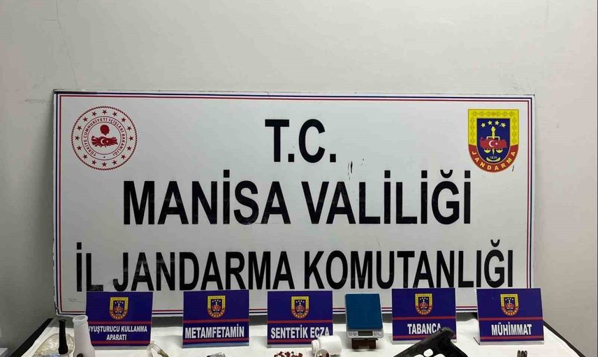 Yapılan aramada 42 adet sentetik ecza, 2 gram uyuşturucu madde, 1 adet hassas terazi, 5 adet uyuşturucu kullanma aparatı ve 1 adet tabanca ele geçirildi.