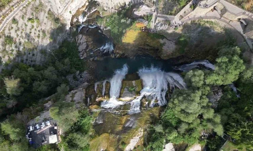 Yerli ve yabancı turistler, özellikle şelalenin yüksekten dökülen sularının oluşturduğu görsel şöleni hayranlıkla izledi.