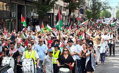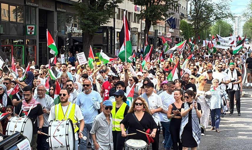 Birçok sivil toplum kuruluşunun öncülüğünde düzenlenen protestoda, Odenplan Meydanı'nda buluşan kalabalık, İsrail'in Gazze'de işlediği savaş suçlarının derhal durdurulması için İsveç hükümetine harekete geçme çağrısında bulundu.