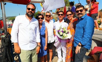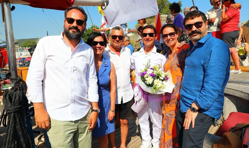 Bodrum Limanı'nda düzenlenen karşılama töreninde, tüm tekneler korna çaldı ve bando takımının marşları eşliğinde STS Bodrum'un limandaki yerini alması büyük bir coşkuyla karşılandı.