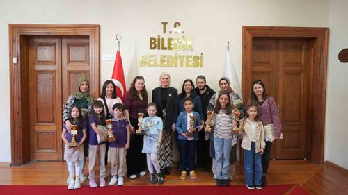 Bilecik Belediye Başkanı Melek Mızrak Subaşı, 29 Ekim etkinlikleri kapsamında şiir ve resim yarışmasında dereceye giren öğrencilere ödüllerini takdim etti.