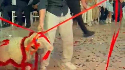 Afyonkarahisar'ın Şuhut ilçesinde Hasan Ali ve Ezgi Karanlık'ın düğününde damada arkadaşları tarafından süslenmiş bir kuzu hediye edildi; anlar sosyal medyada ilgi gördü.