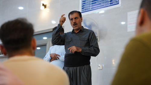 Süleymaniye'nin Kelar ilçesinde Cuma hutbeleri, Hewai Enstitüsü öğretmeni Rahim Kerim tarafından işaret diline çevrilerek işitme engellilere ulaştırılıyor.