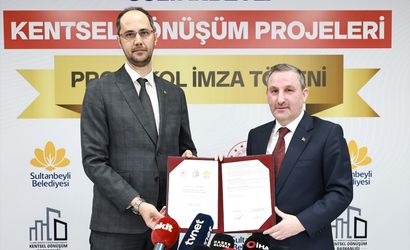 Sultanbeyli Belediyesi ile Çevre, Şehircilik ve İklim Değişikliği Bakanlığı Kentsel Dönüşüm Başkanlığı arasında "Sultanbeyli Kentsel Dönüşüm Projeleri Protokolü" imzalandı. Belediye Başkanı Ali Tombaş (sağda) ile Kentsel Dönüşüm Başkanı Hakkı Alp'ın (solda) katıldığı törenle "Sultanbeyli Kentsel Dönüşüm Projeleri Protokolü" imzalandı.