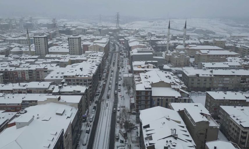Meteoroloji'nin uyarılarının ardından başlayan ve ara ara devam eden yağış, özellikle yüksek kesimlerde etkisini artırdı. Sultangazi'deki beyaz örtü, dron kamerası tarafından kayıt altına alındı.