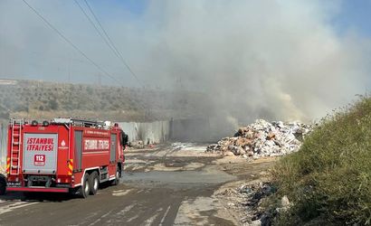 Sultangazi'de katı atık toplama alanında çıkan yangın, itfaiye ekiplerince söndürüldü.