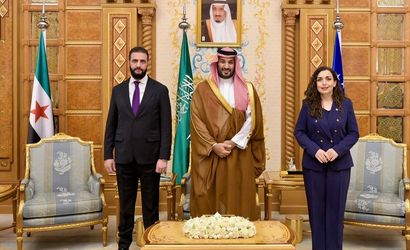 Suriye hükümeti, Kosova'yı resmen tanıdığını açıkladı. Suriye Arap Cumhuriyeti Dışişleri ve Gurbetçiler Bakanlığının, ABD merkezli X sosyal medya platformundaki hesabından yapılan açıklamada, bugün başkent Riyad'da Kosova Cumhurbaşkanı Vjosa Osmani (sağda), Suudi Arabistan Veliaht Prensi Muhammed bin Selman (ortada) ve Suriye Cumhurbaşkanı Ahmed Şara'nın (solda) katılımıyla Suriye, Suudi Arabistan ve Kosova arasında üçlü bir toplantının gerçekleştirildiği belirtildi