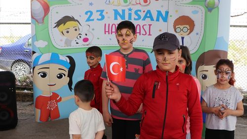 Suriyeli çocuklar, Öncüpınar Gümrük Kapısı'nda 23 Nisan Ulusal Egemenlik ve Çocuk Bayramı'nı renkli etkinliklerle kutladı.