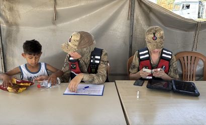 Jandarma, düzeni sağlamak amacıyla oluşturduğu koridor aracılığıyla Suriyelilerin gümrük işlemlerini yapmasına yardımcı oluyor. Ayrıca, kadın jandarma personeli, ailelerin işlemlerini bekleyen çocuklarla yakından ilgileniyor ve çeşitli ikramlar sunuyor.