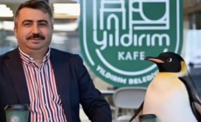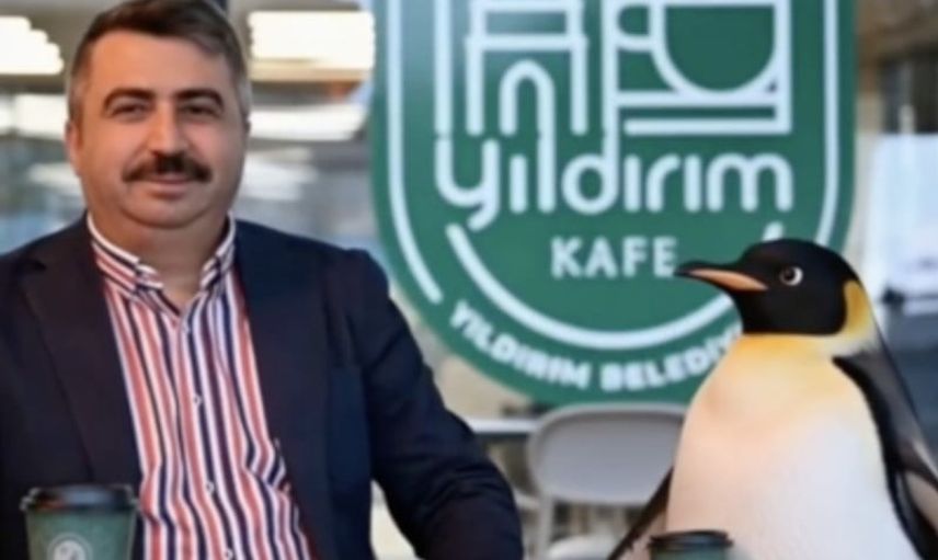 Bursa’nın Yıldırım Belediyesi paylaşımında "Nereye gittiğini merak edenler olmuş" ifadesini kullandı; görüntüde belediye tesisleri ve Belediye Başkanı Oktay Yılmaz ileyan yana görülen penguen yer aldı.