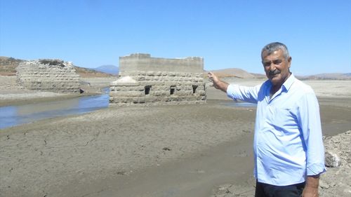 Tahtaköprü Barajı'ndaki su çekilmesiyle Hicaz Demiryolu'na ait yaklaşık 7 metre yüksekliğindeki tarihi köprü ayağı gün yüzüne çıktı.