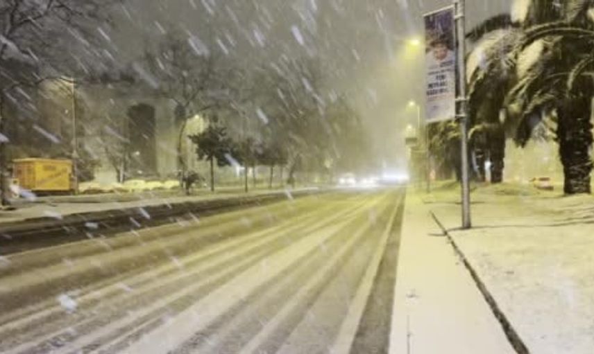 Taksim’de Gece Kar Yağışı Kartpostallık Görüntüler Oluşturdu