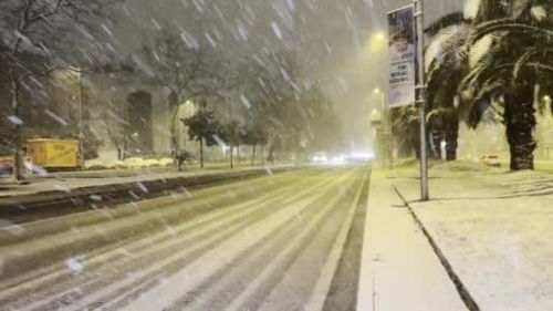 Taksim’de Gece Kar Yağışı: Kartpostallık Görüntüler
