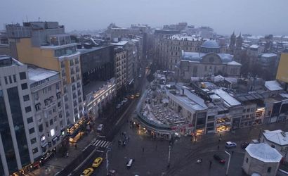 İstanbul'da etkisini sürdüren kar yağışıyla Taksim Meydanı ve İstiklal Caddesi beyaza büründü.