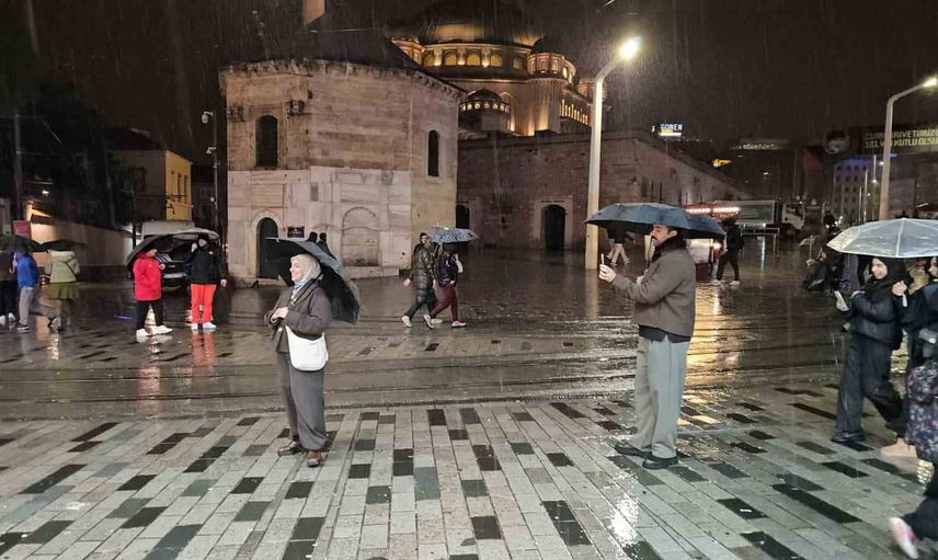 Meteoroloji Genel Müdürlüğü ve İstanbul Valiliği tarafından yapılan uyarıların ardından gece saatlerinde başlayan sağanak, Taksim başta olmak üzere kent merkezinde etkisini artırdı.