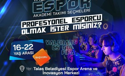 Seçmeler 16-22 yaş arası adaylara yönelik olup değerlendirilmeler Valorant, CS GO ve FIFA branşlarında yapılacak. Etkinlik, Atatürk Bulvarı Dedeoğlu Parkı karşısındaki Talas Belediyesi Espor Arena ve İnovasyon Merkezinde gerçekleştirilecek. Oyuncu seçim mülakatları yüz yüze yapılacak ve mülakatı başarıyla geçen adaylar Talas Belediyespor’un lisanslı e-spor oyuncusu olma hakkı kazanacak.