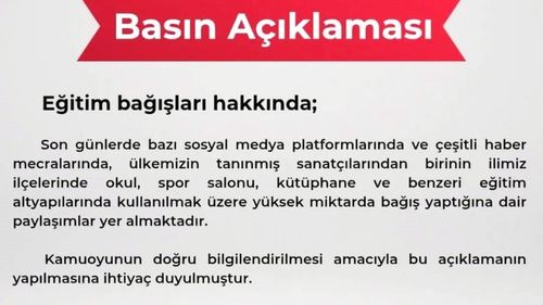 Sosyal medyada yayılan Tarkan’ın Sivas’a 946 milyonluk (22 milyon dolar) eğitim bağışı iddiası, Sivas İl Milli Eğitim Müdürlüğü tarafından yalanlandı.