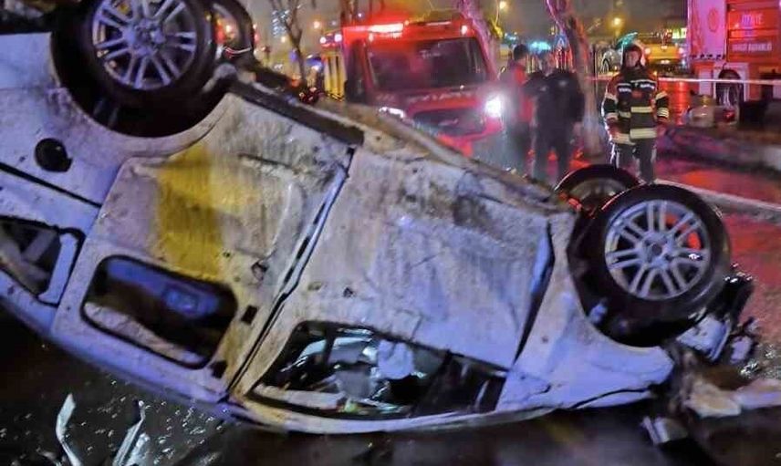 Çarpışma sonucu araçlardan biri ters döndü; sürücü I.B.A. ile yanında bulunan A.T. yaralandı.