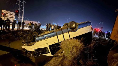Tarsus Yeni Hal Kavşağı'nda minibüs ile otomobilin çarpışması sonucu minibüs sulama kanalına düştü; 10 kişi yaralandı.