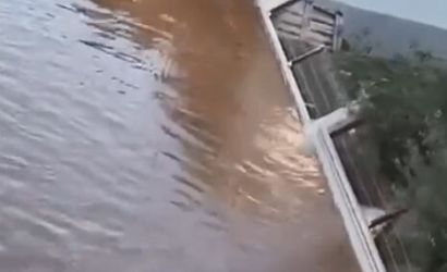 Su ile dolan sitelerden birinin istinat duvarının yıkılma anı, cep telefonu kamerasına saniye saniye yansıdı. Görüntülerde, duvarın çökmesiyle suyun komşu siteye aktığı net şekilde görülüyor.