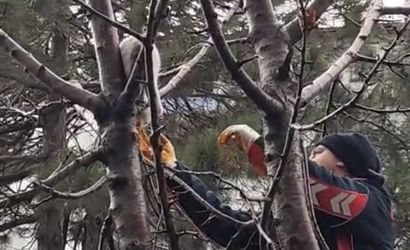 Bitlis’in Tatvan ilçesinde ağacın tepesinde mahsur kalan kedi, çevredekilerin ihbarı üzerine olay yerine gelen itfaiye ekipleri tarafından kurtarıldı.