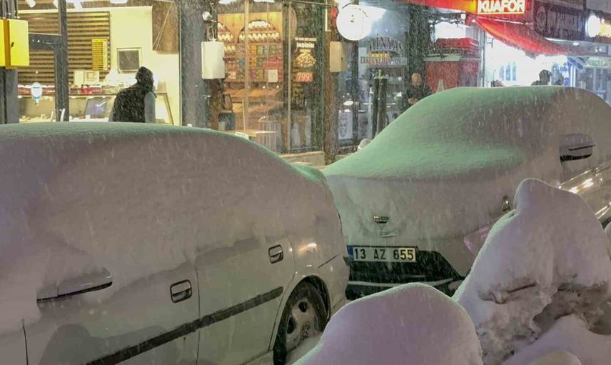 Bitlis’in Tatvan ilçesinde sabah saatlerinde başlayan kar yağışı akşam saatlerine kadar aralıksız sürdü. İlçede yaşamı zorlaştıran yağış nedeniyle kent merkezinde kar kalınlığının yaklaşık 50 santimetreye ulaştığı, yüksek kesimlerde ise yer yer 1 metreyi aştığı bildirildi.